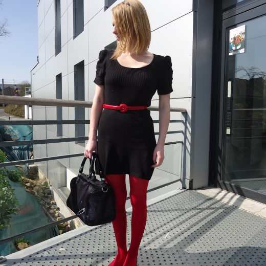 Après le Rose Printemps, voilà le Rouge Waldorf! Envie de sortir les collants avant qu’il ne fasse vraiment trop chaud! D’ailleurs, j’ai très envie de shopper des collants rose…